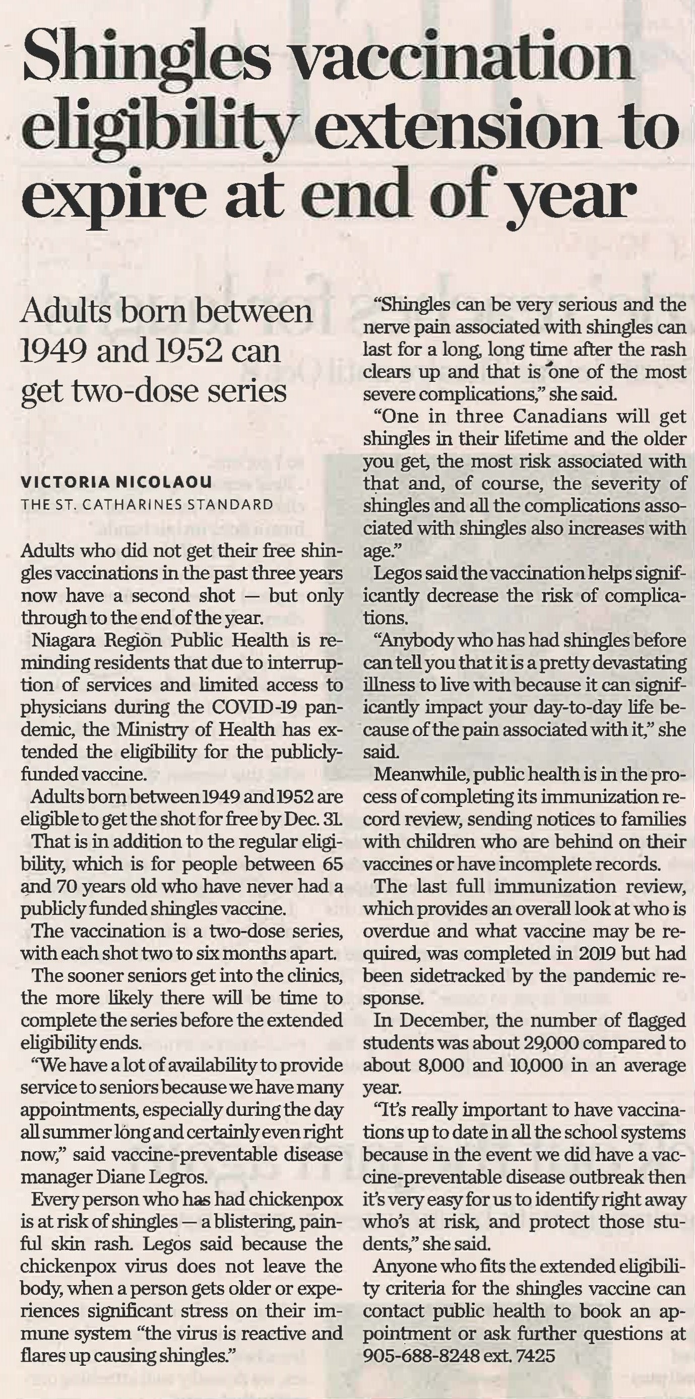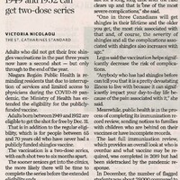 Shingles vaccination eligibility extension to expire at end of year : adults born between 1949 and 1952 can get two-dose series