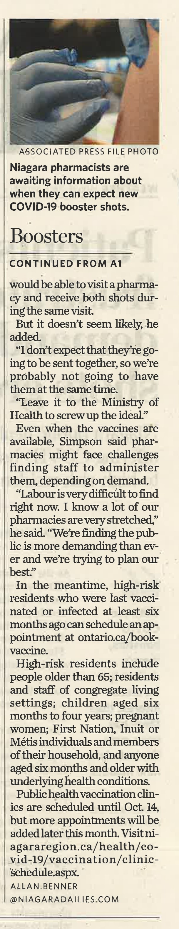 Patients left frustrated as demand for shots grows : Niagara public health now offering COVID boosters to high-risk residents