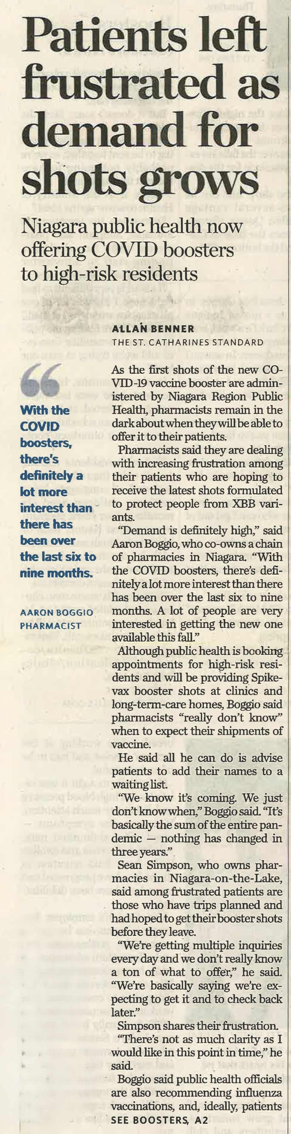 - Patients left frustrated as demand for shots grows : Niagara public health now offering COVID boosters to high-risk residents