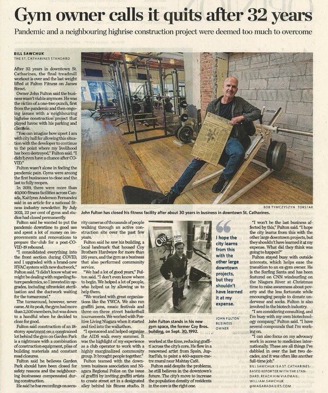 - Gym owner calls it quits after 32 years : pandemic and a neighbouring highrise construction project were deemed too much to overcome