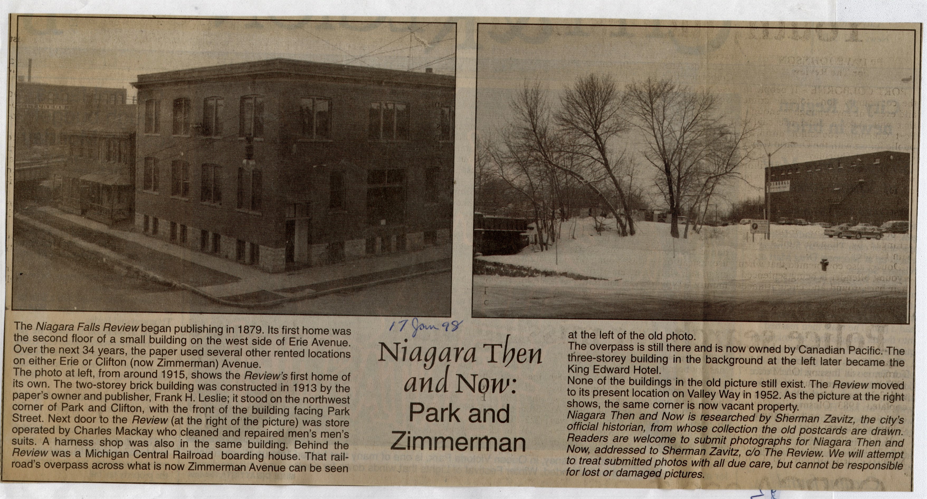 - Sherman Zavitz Niagara Then and Now Newspaper Column Collection