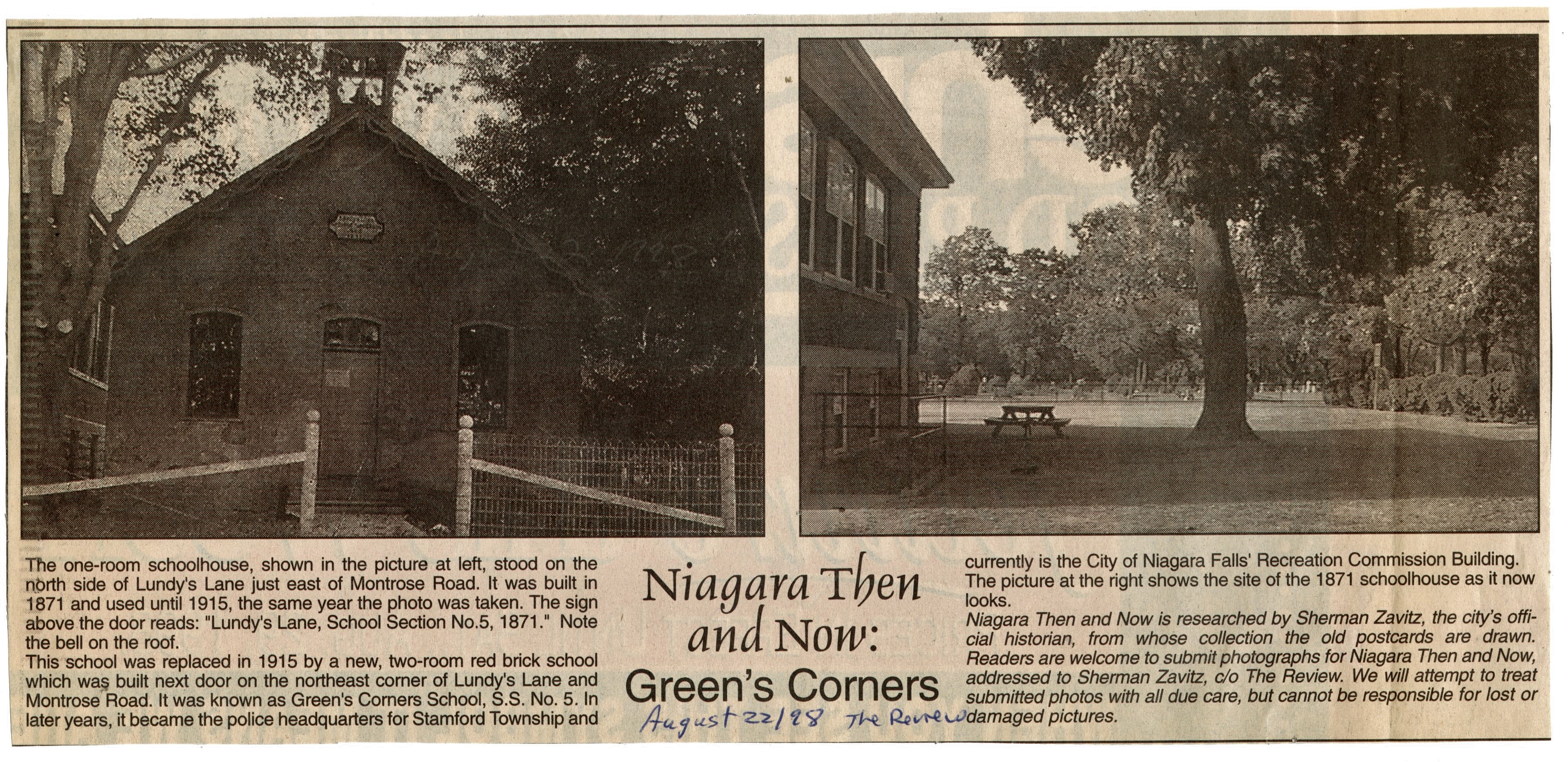 - Lundy's Lane / Montrose Road / Lundy's Lane, School Section No. 5, 1871 / Green's Corners School, S.S. No. 5