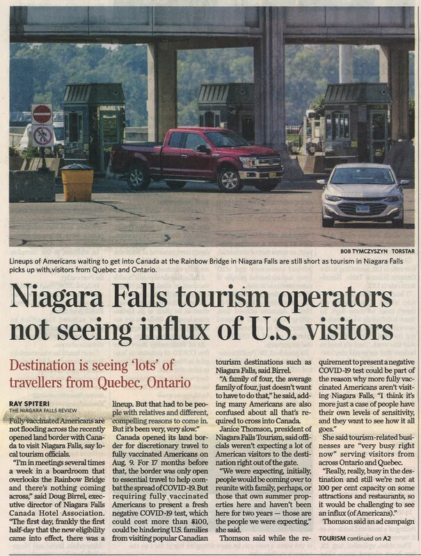 Niagara Falls tourism operators not seeing influx of U.S. visitors : destination is seeing 'lots' of travellers from Quebec, Ontario