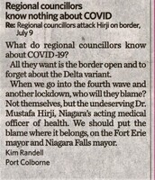 Regional councillors know nothing about COVID : Re : Regional councillors attack Hirji on border, July 9