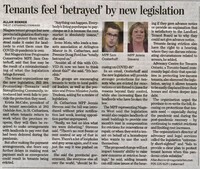 Tenants feel 'betrayed' by new legislation