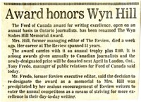 Stokes Hill, Wyn / The Ford of Canada Award / The Wyn Stokes Hill Memorial Award