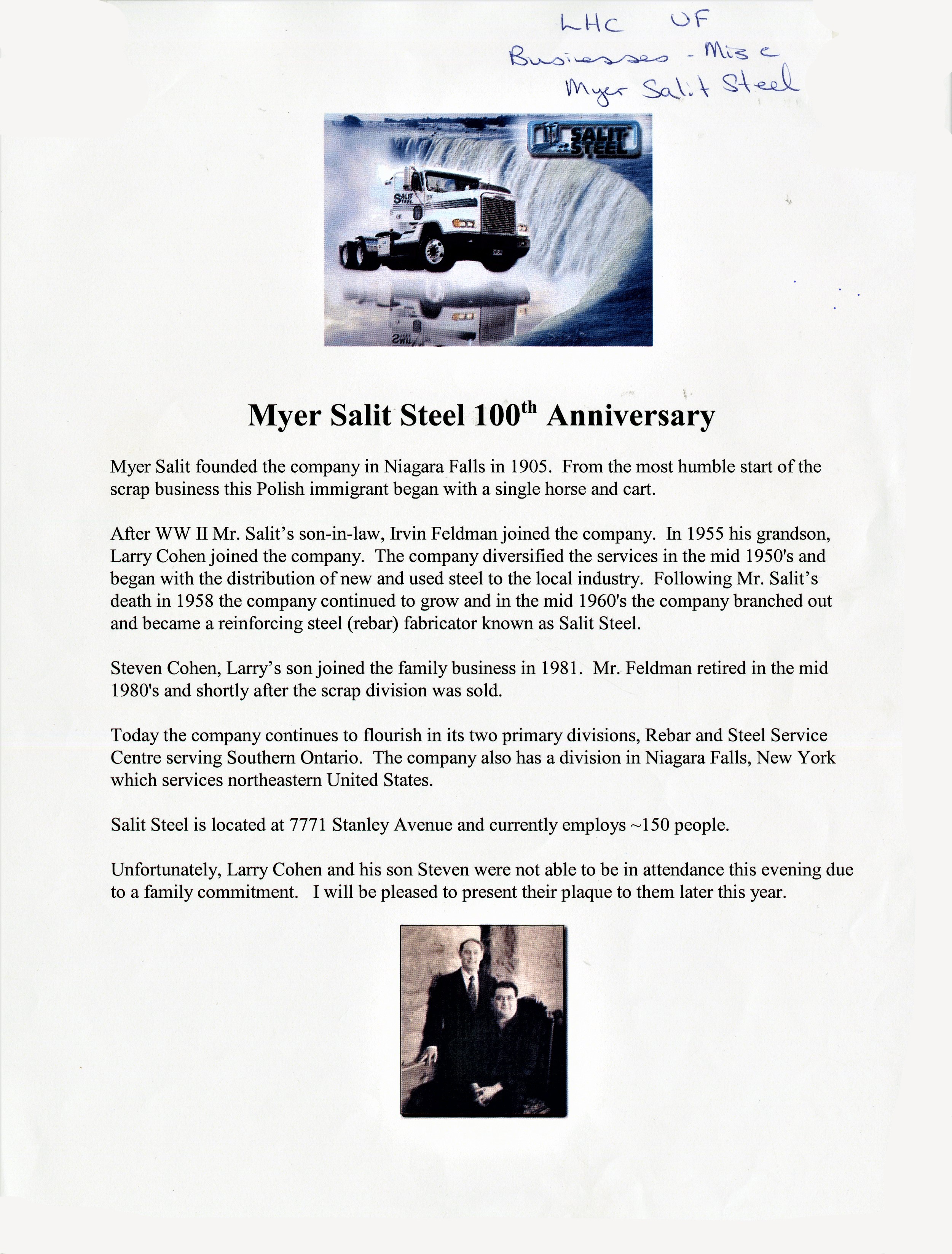 Myer Salit foundedthe companyin Niagara"Fallsin 1905. From the mosthumblestartof the