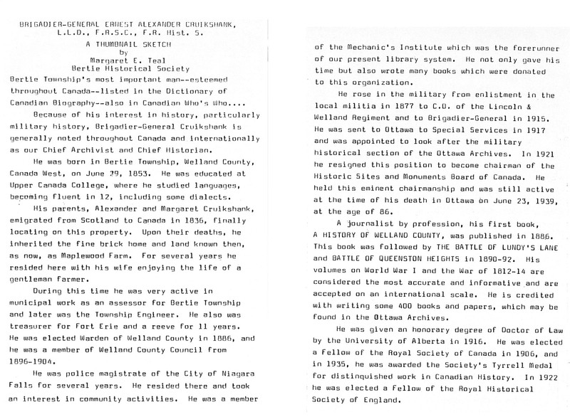 - en-CA From the programme of a Ceremony to Honour the Life and Services of Bridgadier-General Ernest Alexander Cruikshank.