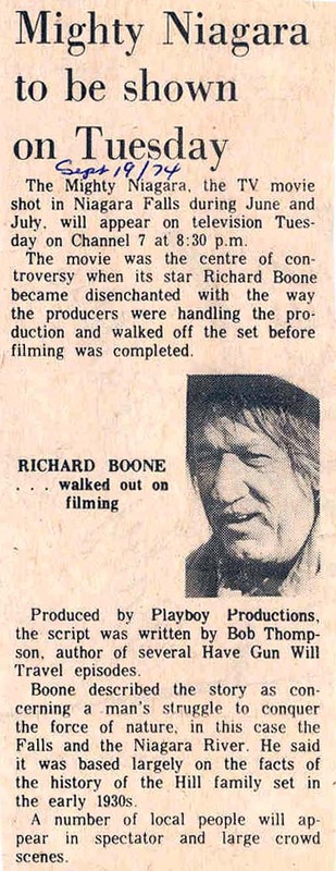 Mighty Niagara to be shown on Tuesday / September 19, 1974 Review