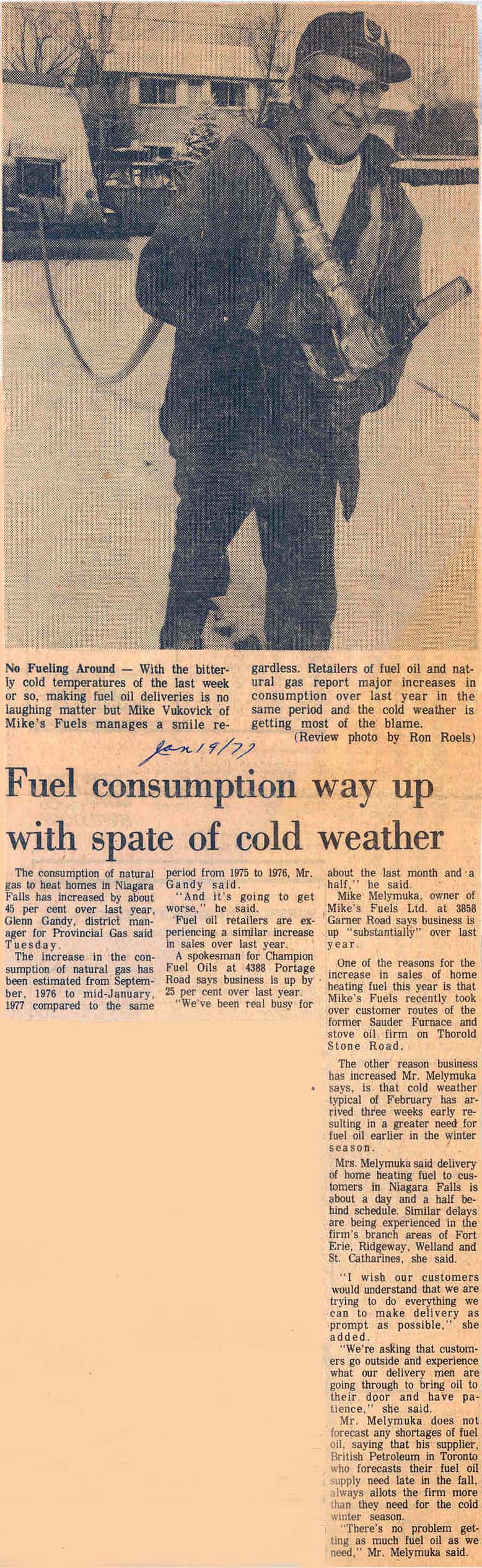 Fuel consumption way up with spate of cold weather / Mike's Fuels / Blizzard of 1977