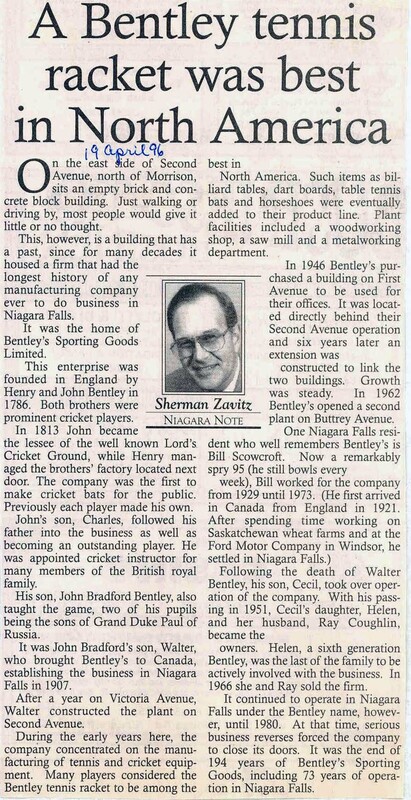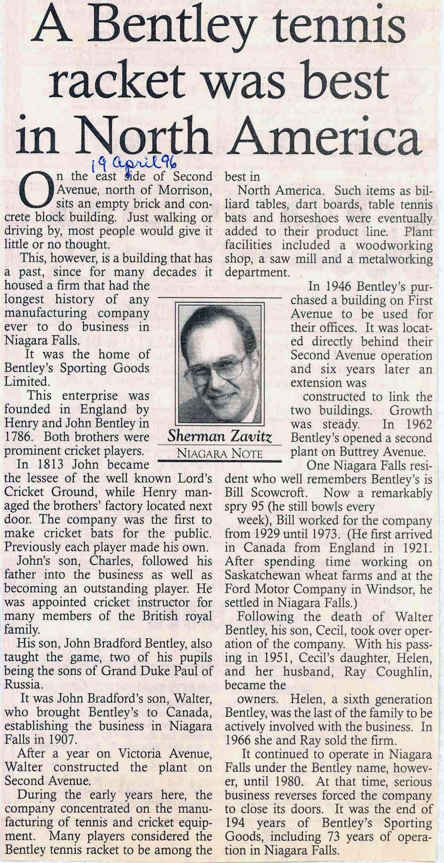 - A Bentley tennis racket was best in North America / Zavitz, Sherman