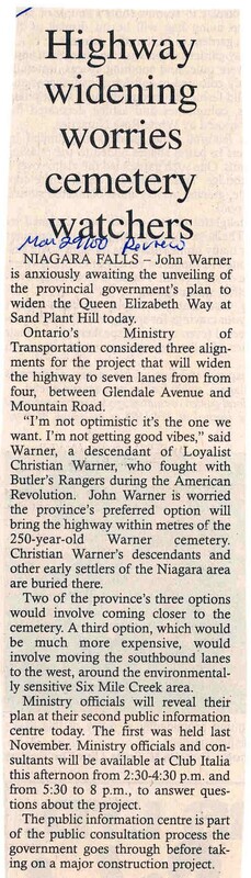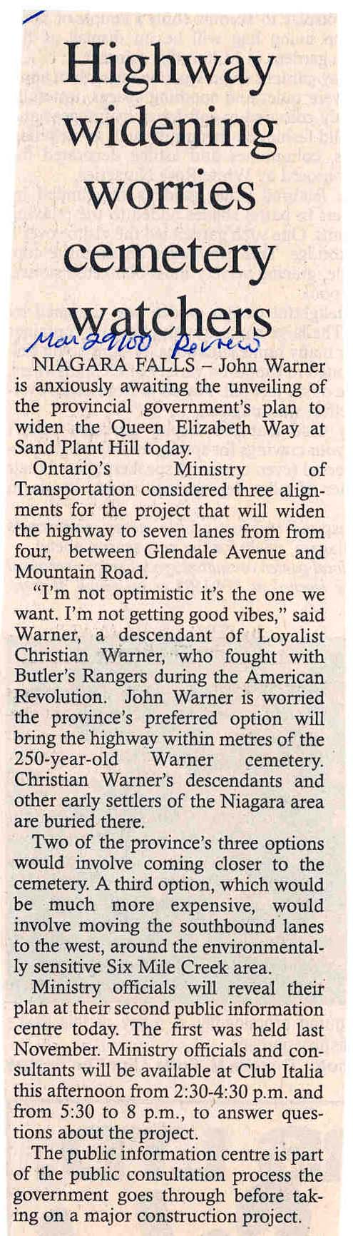 en-CA QEW / Warner Cemetery / Sand Plant Hill / Review, March 29, 2000