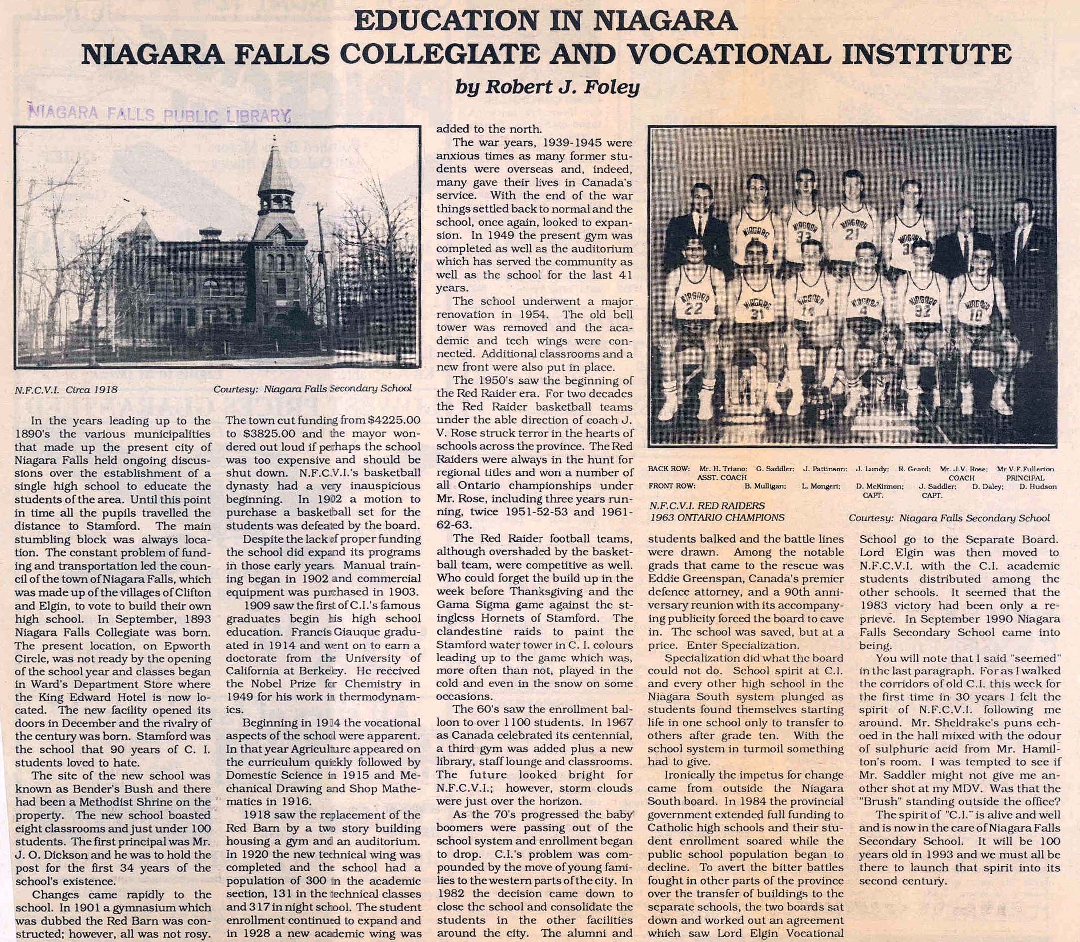- Education in Niagara : Niagara Falls Collegiate and Vocational Institute / Foley, Robert J.