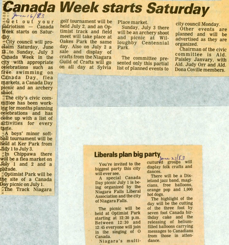 - en-CA Review, June 16 & June 27, 1983 / Canada Day / Optimist Park
