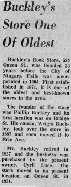 - en-CA Buckley's Book Store / 534 Queen Street / Buckley, Phillip / Bridge Street / Buckley, Wright / Erie Avenue / Luce, Cyril