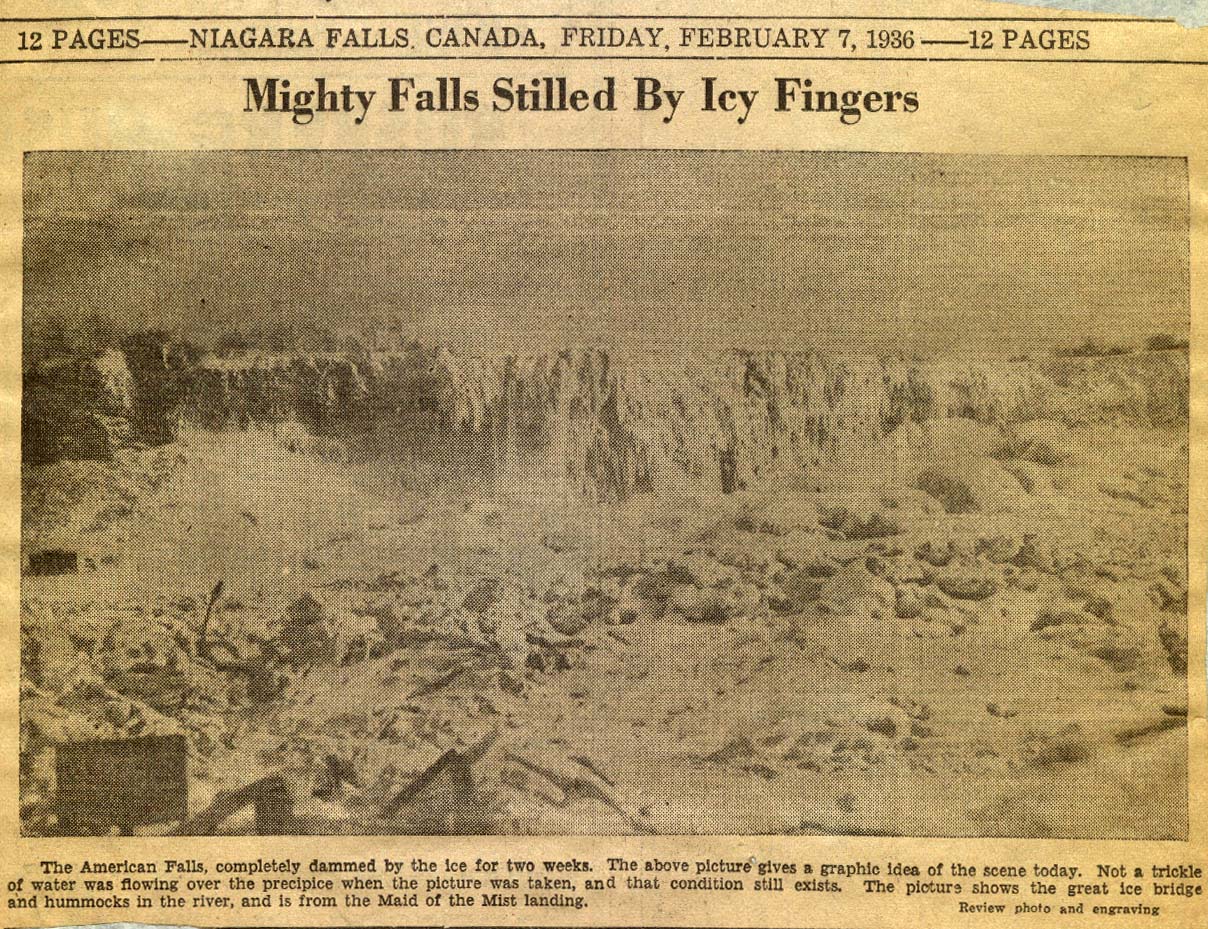 - en-CA Review, February 7, 1936. Frozen American Falls.