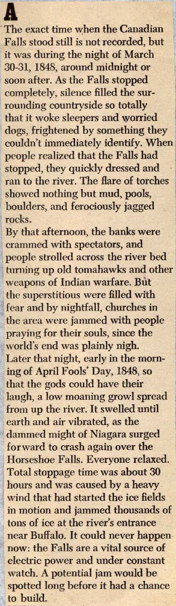The exact time when the Canadian Falls stood still is not recorded
