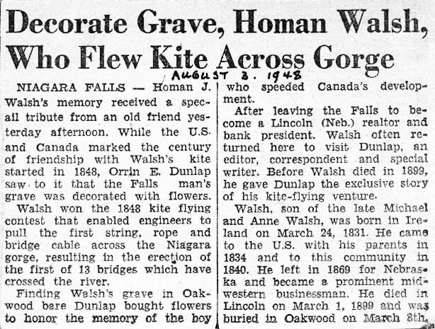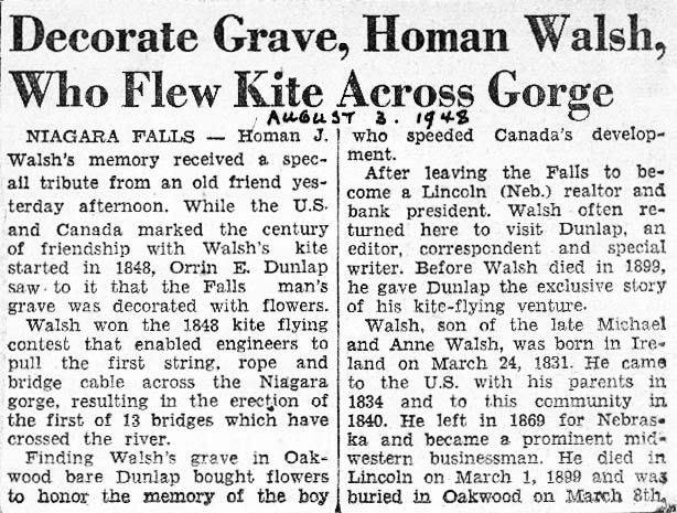 - Decorate Grave, Homan Walsh, who flew kite across gorge