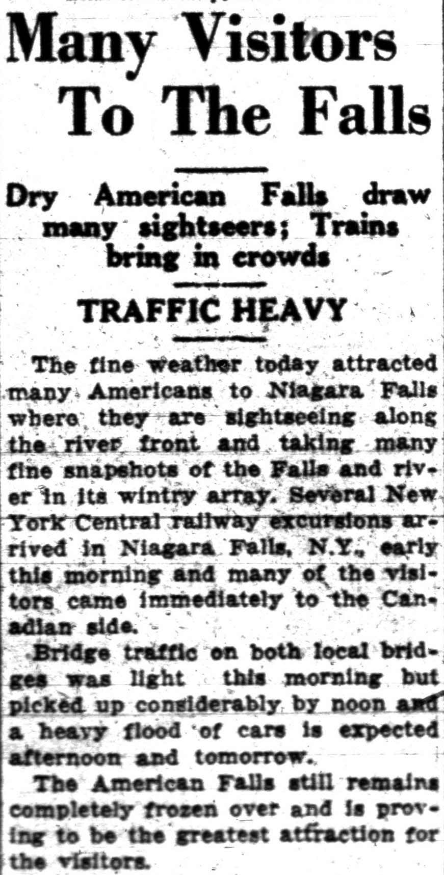 en-CA February 22, 1936. Frozen American Falls. Tourism.