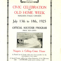 - Civic celebration and old home week, Niagara Falls, Canada, July 13th to 18th, 1925 : official souvenir program.