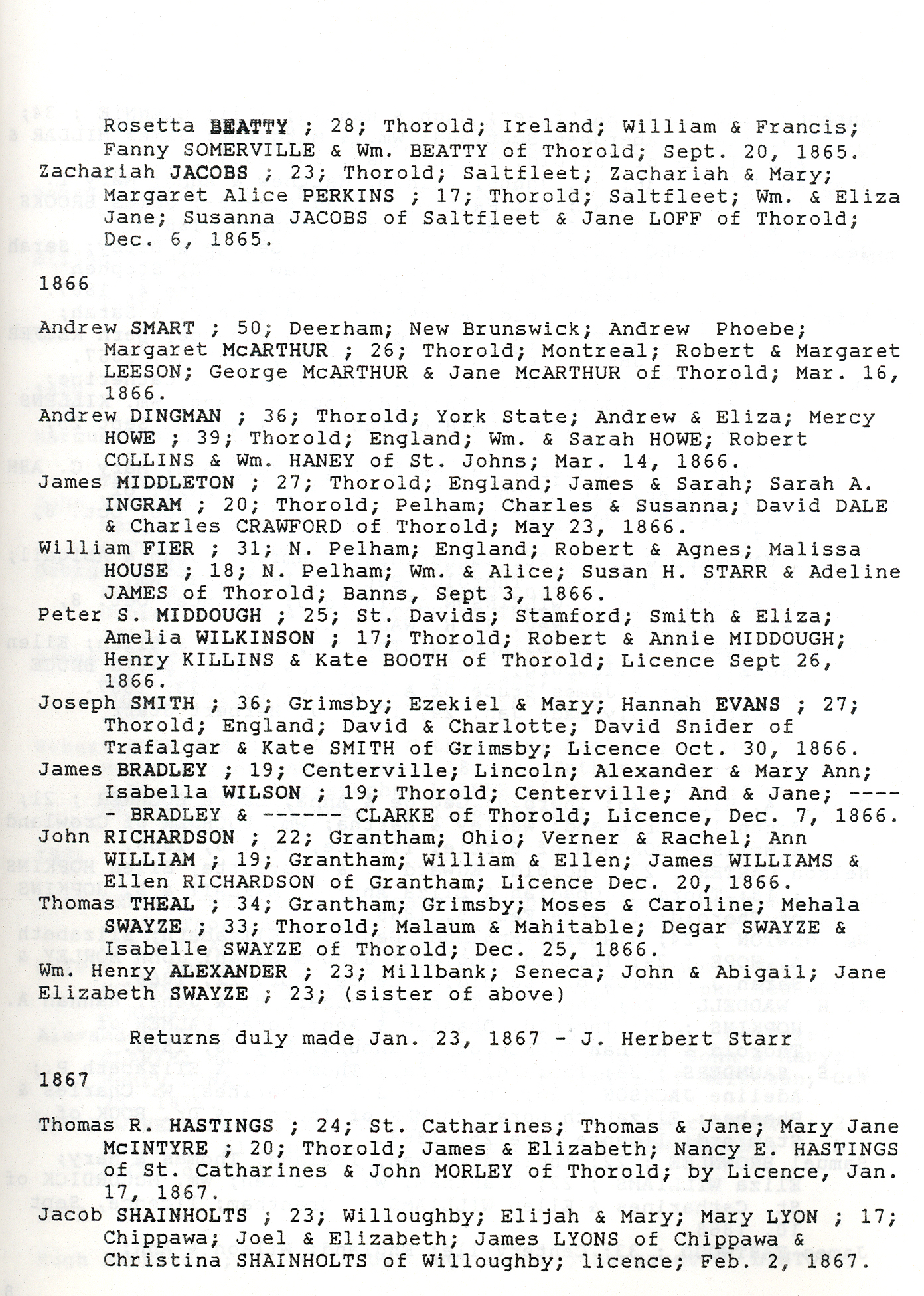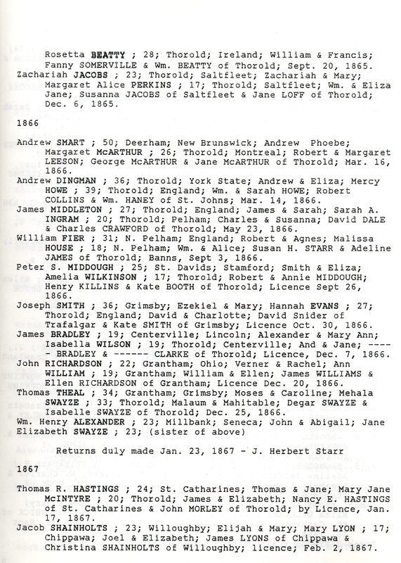 - Marriage records of Methodist Church, Welland County, St. Catharines circuit.